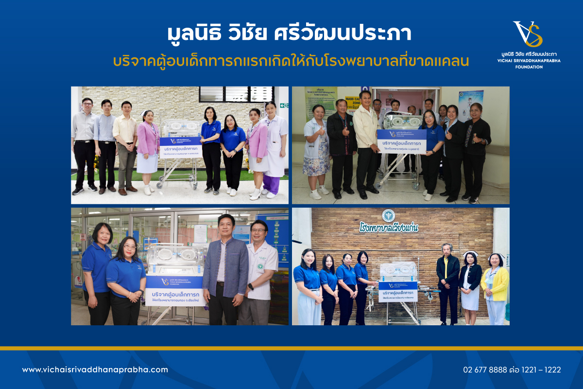 มูลนิธิ วิชัย ศรีวัฒนประภา บริจาคตู้อบเด็กทารกแรกเกิดให้กับโรงพยาบาลที่ขาดแคลน เพื่อเป็นส่วนหนึ่งในการให้ความช่วยเหลือเด็กทารกแรกคลอดให้มีโอกาสรอดชีวิตเพิ่มขึ้น โดยได้ส่งมอบให้กับ 10……
